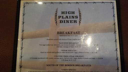 Outstanding food!! Everything on the menu is delicious!! Owners, servers & cooks provide excellent service!! Small town restaurant that makes you feel welcome & want to come back....again & again!! HIGH FIVE TO HIGH PLAINS DINER!!! :-D