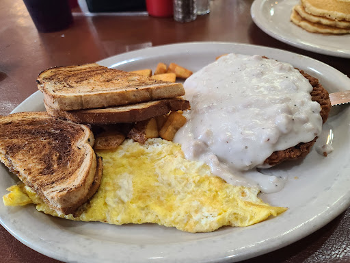 The food is always good. They have the best chick fried steak I have ever tasted. The coffee tastes like soap. The service is usually efficient but not very pleasant. I have friendlier service from Dennys in the ghetto.