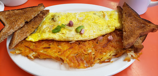I dont understand the reviews from others. We walked in to find a rude hostess and many, many signs listing all of their rules. There are many things you cant do, so be sure to read everything (yes, really!). It really started us off on the wrong foot and it just got worse. We sat in a booth for two and there wasnt much room -- I wouldnt recommend bringing your coat or a big bag in with you. The floor and walls were dirty, and the kitchen floor was a mess. There was a garbage can next to the grill. I visited the one bathroom and it was really dirty. The food? I had the chicken fried steak. It was only okay, but they covered it with a blindingly white "gravy" that was very thick and not flavorful. The potatoes were instant, I think, and the peas were canned. Even my toast wasnt very good. How is that possible? My friend had a breakfast platter that looked much better, but she said it was only okay. Surprisingly, the place was packed for lunch. People seemed to enjoy it. Maybe its the low prices? I guess Im glad we tried it, but we wont be back. If youre claustrophobic, move on to the next diner.