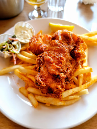 I came here nearly 9 months pregnant and let me tell you, it was incredible! My husband got two beers that he loved and I stuck with water for obvious reasons. The staff was really nice and even playful about me being pregnant. We had the soy garlic edamame to start. I will be dreaming of that spicy, garlicky dish for the rest of my life!!! It was delicious! My husband ordered the special (dry aged tomahawk pork chop with tamale jalapeño hush puppies and veggies) which he enjoy and I ordered the trout. The trout was crusted in cashews (if I remember correctly) and a delicious sauce over coconut lavender rice and veggies. The fish was cooked PERFECTLY and was mouthwatering and the rice was simply to die for! It had a shuttle flavor that wasnt overpowering but goodness was it amazing. The food, the beer, and the staff are great here! Definitely a must if youre in Breck for any given amount of time!