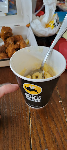 They brought one of the food orders out (a snack size wings) a whole half an our after two medeum orders. One of THOSE orders was not even correct. Then they went even further. Taking my drink because my boyfriend had one sip out of it and he didnt have his ID. Now I understand the laws dont get me wrong. But this is MY drink. And any other establishment you go to, gives you a warning. And then makes you leave if you keep sharing. They also cut me off. Not to mention that fact that they dont pay any attention to you unless they are bringing you something. And then that rush off. Almost like there management is running them too hard and they feel like they dont have time to take care of there customers. Water glasses empty even after asking for a refill. This place is terrible. And over charged. My honest belief is that they are only open because it is a buffalo wild wings and they have a million TVs.