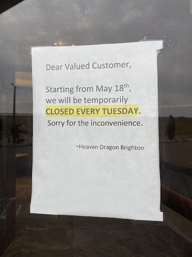 Tried calling 5 times but was transferred to a voice mail each time. I called the Heaven Dragon in Thornton for some assistance. She assured me I was dialing the right number but she said she was too busy to help me any further. I was looking forward to ordering Chinese tonight and was excited to find a Heaven Dragon in Brighton. This is unfortunate because this is a new restaurant I would have been happy to write a good review for.