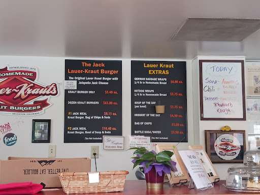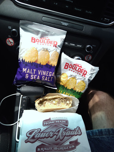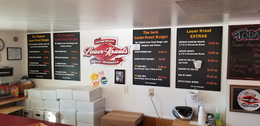 Heres the deal. Some people complain that this place is only open till 4pm so you cant eat dinner, but honestly its a lunch food. They dont serve full meals. its technically a sandwich. why would you eat that for dinner? They dont serve fries, you can get chips.. but really all you get with the burger is a slice of pickle. Its great, Its a good portion for lunch.. if you feel that you need more than that, then you are over eating and you need to rethink your diet. And yeah, it doesnt pack a whole lot of flavor in your mouth.. thats what the sauces are for! The Lauer kraut brand of sauce is delicious and compliments the burger very nicely. I really like the pepper jack Kraut Burger. once again, youve gotta have it with the sauce on it. I didnt try the brownie, but I will next time I go. The staff and owners are super friendly and really accommodating. The place is clean.. small, but clean. Its a great place to have lunch and I am proud to support local businesses.