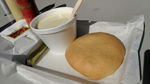 Went to grab my first ever kraut burger and while I was there I got a piece of rhubarb cake (while Im at it why not try two things right?). Kraut burger was good. I didnt dip in mustard but just read thats good so Ill try it next time but ... OMG!!! I didnt get to the piece of rhubarb cake until after dinner that night and it was MIND BLOWING good. The kind of good where you stop and slowly savor each bite. If you check out their website they have a different dessert each day. I will be stalking their website for the next opportunity to grab that cake. I dont even like cake and Im not crazy about rhubarb but WOW. I cant wait until my MIL comes back into town (shes a total foodie and a fan of food network) but I will be sure to bring her on rhubarb day if possible. I even learned how to spell rhubarb to write this review. Ok, yes, I should try the other desserts too but if they are all this good Im in big big trouble. Also, the folks there are super nice. :)