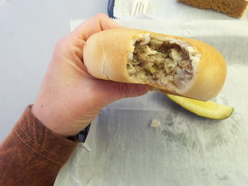 Wow. I grew up having cabbage pocket for school lunch. Just like I remember. Incredible!!! Great service, also German sausage wrap excellent.
