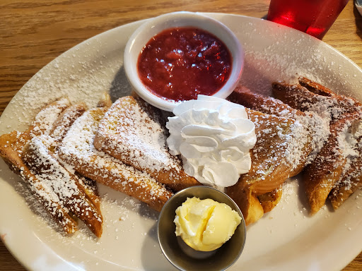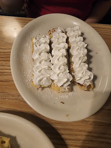 Food was good. Waitress spilled syrup all over my son in law, barely apologized and took 5 minutes to bring us a rag to wipe off the seat and him. I watches while she went to the kitchen and took someone else their drinks before going back for the rag.