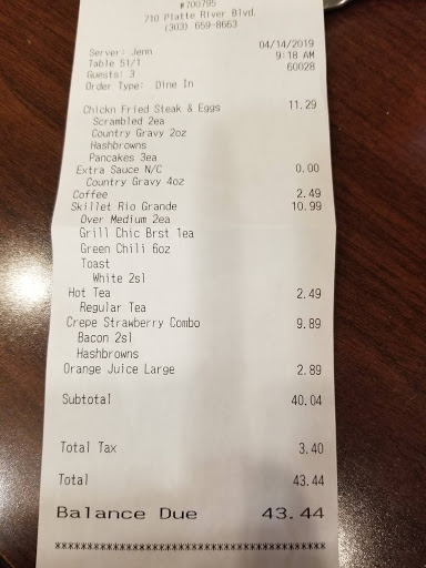 Came in at about 11 on a Thursday, maybe 8 people in restaurant: - waitress is clueless. Took 5 min to get seated and 20 min to get drinks (iced tea). Spent 80% of our time drink-less. You can hear her back in the kitchen cutting up with the cooks, meanwhile people have been standing waiting to be seated for five minutes, drinks are empty, tables filthy, etc. There is literally not a single employee in the dining area 90% of the time. I could have taken the register and 20 pies unnoticed.She literally delivered a tables food and left the tray on top of the tray stand right at the end of their table for their entire meal. I cant stress how laughable the service situation was. It was hard to believe. - drink glass was filthy, covered in dried cheese, etc - manager (Michael) spent most of his time outside/in back (smoking?) and was of absolutely zero help. When I told him at the counter that this was arguably the worst service I have ever received at a restaurant he responded "I know" and attempted to act apologetic. Completely incompetent and a total space cadet. Like huffing paint level of incompetent. - my coworker literally had to walk halfway into the kitchen to finally get our drinks at which time we were completely done and leaving. - English muffin came out completely dry and untouched. I mean they took one out of the bag cut it in half and put it on my plate. - A busboy finally emerged from somewhere (first time we had seen him in the hour or so we were there and acts like they are shorthanded. At this point there are five people dining in the restaurant. I couldve cooked, cleaned, waited, everything and still offered better service. They were never shorthanded; you could hear them in the kitchen the entire time as everyones head in the lobby was turning searching for their server. After a long day starting in Gillette, WY we were hoping for a halfway decent, late dinner but got what almost seemed like a hidden camera prank instead. Zero stars if it were possible. Gas station taquitos and a warm beer wouldve been a more enjoyable experience.