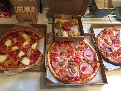 We ordered 3 pizzas and 3 desserts via their website. The pizzas are individual size and would be a large portion if you ate the entire pie. Ordering on the website was straightforward. When ordering online, they will put the pizza together ahead of time, and will put it in the oven only after you check in. So, you will have to wait about 10 minutes once you arrive. Our server gave us complimentary drink cups while we waited, which we appreciated. When we arrived, there was a decent-size line, as the place is locally popular. The ingredients tasted pretty fresh and the crust was okay. Ours was slightly overcooked. The the desserts are all approximately cookie size and were not overly hard, but not super fresh either. The place is better than a chain pizza place, but may not be as good as a Pieology or some other personal preference restaurants.