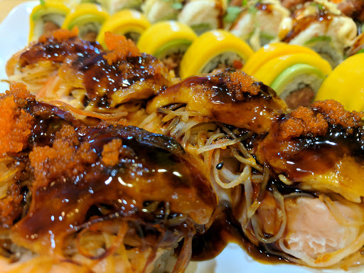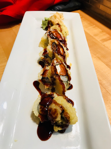 Really good spicy sushi, a lot of places arent spicy, this place is. Sort of inventive rolls, we loved the Firecracker, No Name, and Godzilla because all the spice, different textures. Our favorite basic roll was Eel, because it falls apart in your mouth. Their menu was incredibly easy to read, b/c they specify ingredients inside and outside the roll. Good happy hour prices on Saki, a bit pricey if you dont use their coupons Though, we didnt care for their use of crunch in rolls, many rolls have Tempura Shrimp and it got old. Be sure to try their in house soy sauce, they make it with shitaki and daicon, wasnt a salt bomb like sit sauce usually is