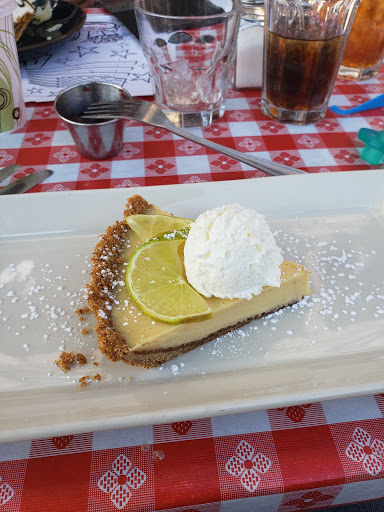 Table was not cleaned when we were sat. The server was a little surly and got our order wrong, despite only ordering two items total for two people. Non-alcoholic drinks are not listed on the menu, so youll have to guess at what they have. The coffee was served lukewarm and there was no sugar on the table. The banana cream pie was around 98% whipped cream and crust, with very little banana filling to be found. Prices are also pretty high, going at $20 for two slices of pie, a cup of coffee, and a lemonade. But the apple pie was good, so they have that going for them, which is nice.