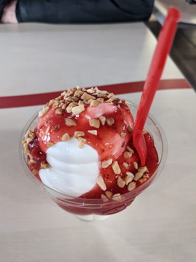 Stopped by for Banana Splits at 9 PM on Saturday (Memorial Day weekend) the first thing was a horribly strong smell in the entry. The inside smelled also like a sour mop bucket somewhere. Our server had so much food on her shirt I couldnt tell you what color it was. The amount of ice cream in our splits didnt even reach the top of the boat however while we were eating the staff started lifting chairs & cleaning the floor. I guess that explains the lack of ice cream since they were closing. At 9:30 we left while an employee locks the door behind us like there was a rush of people waiting to come in. The sign on the door says they close at 11:00 as does the website. Really disappointed.