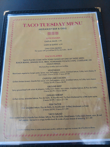 I love the Hideaway. Its another place that people in Castle Rock or passing travelers can go to make them feel comfortable and at home. The owners are awesome and continue to try and bring new things to the local crowd that will keep them coming back for more like different menu items, Bronco football perks and Sunday morning brunch with bottomless Mimosas and a Bloody Mary bar. Karaoke with Jimmy on Thursdays and Saturdays is always a blast! Good food, good brews, good crew, good times!!