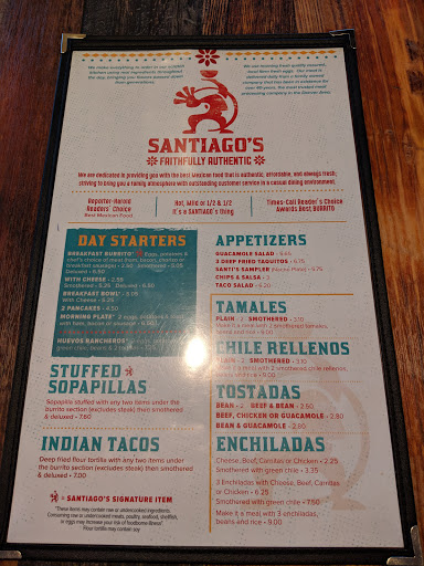 I used to get food at the Santiagos on Broadway in Englewood. I used to work that direction and came to love their food. Last week I went to the Castle Rock location. I got carry out so I could back to work. I got back to my store and found that the 8.00 plus 2.00 tip was spent on the wrong thing. I got a small burrito, no chili on the side. I had ordered a stuffed Sopa. with chili on the side. The staff was too busy with a personal phone call at the time to check it or be sure what was going out was correct. I love their food, so I went back this week. I ordered what I wanted to again. This time I checked it before leaving. I got back to my store and the person who submitted a review just 2 weeks ago nailed it. The food at this location is no where near what I was used to getting at the Englewood location. The stuffed sopa tasted burnt. It was not good at all. Not sure I will give it a third try...