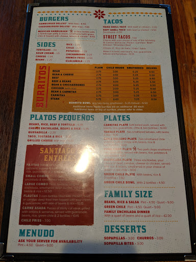 Great food, terrible service. We left today after waiting over 30 minutes and watching multiple parties who came in after us be served. On the way out I told them why we were leaving and the guy just looked at me with a blank stare. I dont know if the young blonde woman forgot to submit our order or if 2 bean burritos and a taco salad took that long to make. The servers are always harried even when the place is half empty so I think we will just not go there anymore. Lots of new places to eat in castle rock