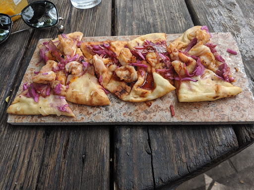 Food was decent but overpriced, drinks were a dollar up for typical local dive drinks. They try with the food, but it falls a bit short...especially when you get the grand tour through the prep area to get to the backyard. The kitchen seemed surprised to see us back there, even though its the only route back. Drinks were decent if undersized...until the bartender lit up a cig in front of us. I bartend and know the need for nicotine, but you couldnt even take it to the alley? All in all, theres a lot to be desired, especially if you want to be a Springs destination.