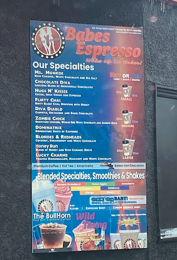 Hahaha....clever way to sell coffee, but not if you dont get repeat customers. Well never be back. My wife and I were laughing since we were a bit tired from a long road trip and then just stumbled upon Babes for our morning brew. Almost naked, the young woman who took our order ended up asking the other woman in the coffee shack how to make our order. Obviously they do not put much value in the art of being a barista and knowing your espresso. We paid and drove off, in sort of a hurry to get to my aunts house, the reason we drove 800 miles from southern Arizona to Colorado Springs. My wife took a her first sip of her "Latte Breve" and gagged. I thought that she had burned herself, however she warned me and asked me to try the drink. Ive tasted a lot of coffee over the last 45 years since I began drinking it, but nothing prepared me for the ghastly taste that followed my tiny sample taste. Either the expresso machine had just been cleaned with chemical detergent (it was shortly after they opened that we stopped by) and had not been throroughly rinsed or the cream she used was ancient and had gone so sour that it tasted like chemicals. Actually, we both agreed it was most probably both reasons for the foul taste that hovered in my mouth for many minutes until I got a nice blast of an ice cold Starbucks Mocha drink at a convenience store to drown out the flavor of that chemical coffee drink. Good luck with this formula for getting customers....