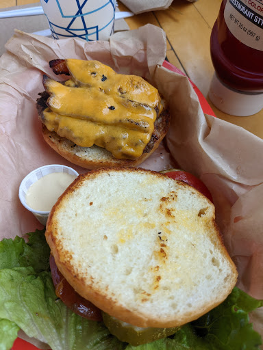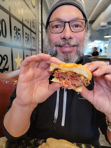 It wasnt horrible, however it certainly wasnt worth the $42 price. Heres the breakdown: My order - Go Fish (salmon) on a gluten free bun, sauce on the side including a large parm fry, and a drink. My husbands order: The Steel City, cooked medium including a large parm fry, and a drink. The portion size of the salmon was on the small size surprisingly, as the picture showed a decent size on a bun. The bacon was "limp", undercooked and soggy. Not sure how thats possible. The bun was good for being gluten free. The fries tasted like normal fries, and there was nothing special about them it seemed. Not worth paying more for certainly. The dipping sauces are very good. My husband LOVED his burger and said "they must have sang to this cow before slaughter". It was pink, juicy and a very great experience for him. I know my husband will be back. Probably not me though.