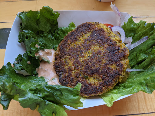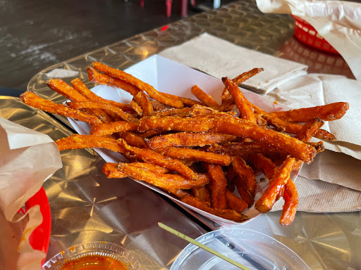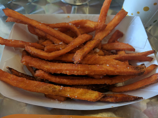 Quite possibly the messiest and overpriced burgers that Ive ever had. I had the Tejon and a friend of mine had some monthly burger with bbq, cheese, and onion. Total with sides of fries we spent over $30 with one soda. First off, the meat wasnt that great, aside from being thin and insignificant in comparison to the toppings. I might have paid $9 for my burger given how sloppy it was (85% of my mushrooms immediately fell out), and I might have paid $3 for my friends given that it was impossible to eat. The fries were also over salted and not well-flavored. The sauce provided was a comical amount too. Also, who doesnt have a sriracha mayo to pair with sweet potato fries?? I also dont know what oils / method they used for the fries, but they tasted like fries that had been sitting around. Id really recommend going somewhere else with your money, time, friends, kids, family, pastor...hell if youre buying a homeless guy a burger, dont even take him here--hell just be disappointed.