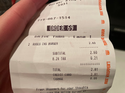 When wendys on s. Nevada was rude burger king welcomed me with open arms and good food.