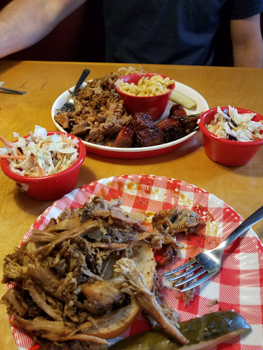Friendly enough staff but horrendous bbq, the brisket was dry, and had no semblance of smoke flavor, the pulled pork was wet, not moist, wet, it too had no smoke flavor and little seasoning, the cornbread, dry and flavorless, the chicken, dry and overcooked, their sauces were solid, but good sauce cant save bad meat. The beans were bland and the mac and cheese had so much pepper you couldnt taste anything else. How they remain in business is beyond me.