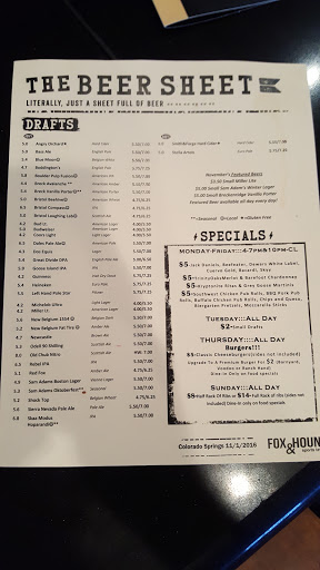 20-Something year old manager told us the place was maxed out, but her employees knew what was going on more than she did. The people under her assured her there was space, and once we were seated and I asked her if I could see her manager. She said, "I am the manager" to which I replied, "you couldnt possibly manage yourself." Still havent seen her manager, and she still has girls that are supposed to be under her teaching her what to do..... so disorganized, poor management, bad service (takes about an hour to get each beer) Ive been to Fox and Hound in other states but the Colorado Springs location is absolutely horrible. A glorified Applebees.