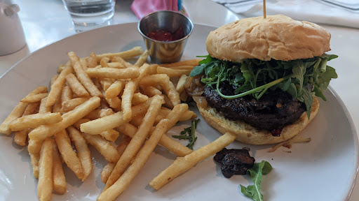 Our first and last visit to the cafe was disappointing to say the least. I would have given the cafe 2 stars for ambience, but after having to work our way through the maze of chairs to our table, it gets 1 star. We ordered the beet salad with blackened salmon, the Friday fish and chips, (I hope they dont serve it any other day of the week) and the carnitas taco. All dish with pathetic and far from gourmet. I guess the gourmet word for blackened is burnt. The only this that could have saved this meal was to scape of the burnt portion and ask for lemon which never came because our waitress forgot and spent her time folding napkins. The salad portion consisted of 4 beets and maybe a half cup of lettuce. A stretch of the term salad. The fish and chips had greasy stale fries, oily flavorless cabbage, (I guess this was the cold slaw), two pieces of what appeared to be fish but on further investigation was just a thick over fired crust with dried out fish skin on the inside. At the end of our "lunch" and when our "waitress" was finished folding the napkins and looked up at her tables, we finally got the opportunity to let our waitress know about the meal. She said shed take "a couple of bucks off". Real gourmet style I must say. The pork carnitas looked like ground up baby food in a corn shell. Thats all I can say about that. Other than it didnt resemble anything I have ever seen ordered that had the word carnitas in it. Shame of you...... 3 strikes..... your out!