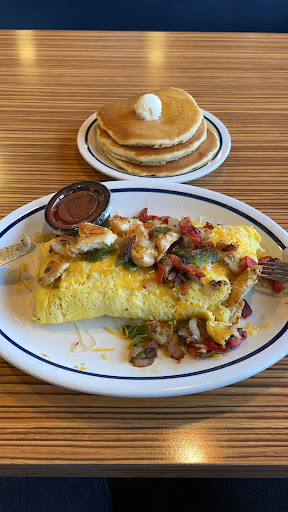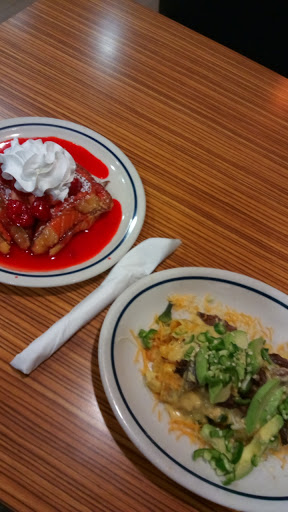 I felt as though when it took 15 minutes to seat us with how empty it was, we probably should have left then. I had 3 adults and 7 children. Worst customer service ever. I called to verify the kids eat free promotion and was told it is still going. After were rung up they said its only on Tuesdays. We definitely wouldnt have gone if that was told to us when I called. Were calling corporate. So, the manager.....was not even remotely doing his job. Our food was literally sitting on the service counter for 15 minutes. One adult asked for medium steak tips and eggs...her hash browns and steak were burnt. It took about an extra 20 minutes to replace the hash browns by that time most of us were done. The person who ordered the steak ended up going to get steak sauce off another table. It took 20 minutes for another adult to get a side of gravy for his chicken fried steak. The kids ordered a confetti pancake with sides of mixed fruit....the plates were delivered without it and they came about 15 minutes after when we asked where it was. While we were there a set of people left the lobby after waiting 20 minutes to be seated. This whole time the manager is slowly walking around and doing things like cleaning off a table...for 10 minutes at a time. Another couple, some elders, kept asking if someone would check them out after their meal. They walked out after 15 minutes of asking. We just looked at the receipt and they charged us for an extra kids meal. The manager didnt even want to talk to us. Im sure he knew how unacceptable this whole visit was. If I could give 1/4 a star...I would. We didnt even have silverware on our table at all until we asked for some. Our food should have been free, really. Ive worked as a waitress, hostess, food service manager, and a line cook so I have an idea of what should have taken place. This was the worst experience Ive ever had at an IHOP. Dont go to this location unless youd like to waste time and money. We could have ordered a couple pizzas from a gas station and been more satisfied. Thats how bad the customer service was.