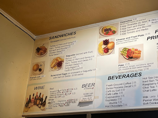 Do NOT come here in anticipation of a French bakery. Its fine as a standard bakery and does have good coffee, but my classically trained kitchen self was shocked that they get away with being called French. Never in my life have I been to a "French" place where an eclair was filled with whipped cream instead of pastry cream. Whipped. Cream. Low quality chocolate was on top (or high quality that they overheated or got water into, causing it to be thick and not fully set). Plain croissant was sweet, which is fine for a bakery, but once again if I choose somewhere for French fare, I expect a butter croissant, not a sugar croissant. And if youre going to pipe "Opera" on the entremet cake in the worst possible unpracticed handwriting, at least include the accent over the "e". Bread was good, but not baked as much as I expect for a French recipe. Whatever type of Swiss cheese they use inside a ham and cheese croissant (once again, the sweetness of the dough was off) was rubbery and pretty gross. I was not happy with my visit and will not return.