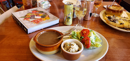 This used to be a really great place for quality and a unique atmosphere. We have been coming here for French onion soup and warm baguette sandwiches. This is no longer the case. We were served burnt French onion, that was not very hot, poorly made sandwiches which were served cold and took 20minutes to heat. Multiple orders were messed up with wrong salads, wrongs dressings and missing dishes. After all that the food was not up to quality. This location is no longer maintaining the quality and standards that we have grown to love over the last 15 years. Please be aware that if you come with a large party the management here is not very accommodating. After making a complaint the manager walked away from us, and while asking for a glass of water the server walked away and never returned. We will gladly still try the downtown location, but will most likely not return.