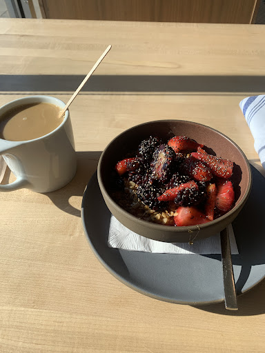 The coffee is great and it is a really neat atmosphere. Great for meeting someone for a quick cup of coffee and to chat. Not great for studying - most of the seating is fairly uncomfortable (backless benches, concrete bench). Also not a ton of food, but the apple ricotta toast was awesome!