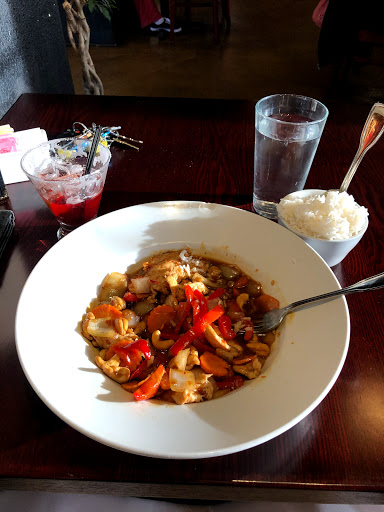 This is a pretty good Thai place nestled into a small corner of the shopping plaza. The atmosphere is nice, the food is nice, thats really all there is to it. Its not your typical carry-out Asian places, and the prices reflect that, but its still definitely worth trying.