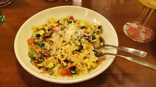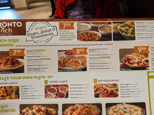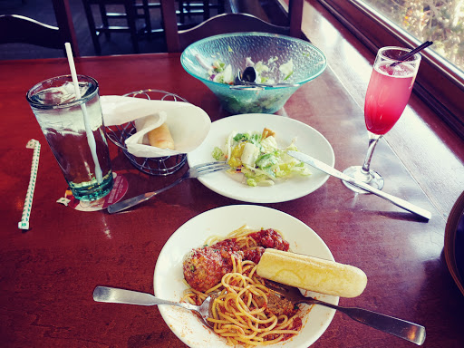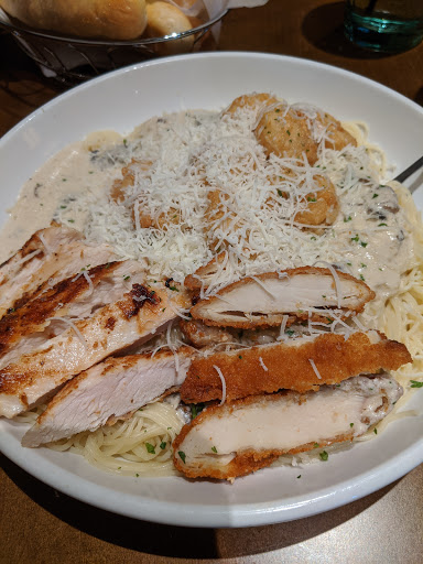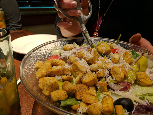We LOVE Olive Garden and have visited easily 30 of them all over the country. This particular Olive Garden was yuck; barely finished (gooey in the middle), tasteless bread that didnt arrive until 15 minutes after we were there so the service didnt measure up to Waffle House and neither did the food. My Alfredo sauce tasted grainy or chalky -- not at all like Olive Garden Alfredo sauce; my pasta was overdone and so was the kids pasta. Ive had better marinara sauce out of an 89 cent can and the kids just flat refused to eat it. The whole time we were there, they didnt refill our drinks once and we were the only people in our section and the place was NOT busy. To top it off, employees at this place are too young and apparently feel free to just sit about the dining room on break, talking loudly on cell phones, arguing with one another about their kitchen dramas and generally ruining any chance at a nice dinner atmosphere. Mentionable is that there was management on scene that even seeing that we were disturbed by off-duty employees using the dining room as their break room still didnt make a comment, so clearly a lack of training. The prices of course remain consistent with other Olive Gardens which means this place is just a rip off. Again, Waffle House has cramped seating, but the food and service are both far better.