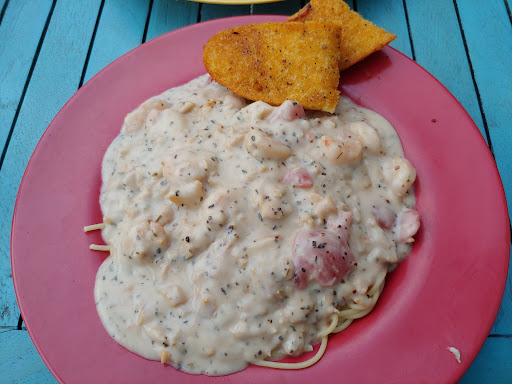 Walking in the restaurant, I had a few red flags... the way the servers wiped down the tables immediately let me know that cleanliness was not a priority here. Regardless, my family was in the mood for pasta and we were already there... then the server took a ridiculous amount of time to even get us menus or waters... later, the salads were nasty... I could buy a better pre-packaged one from the grocery store. Also, we had to remind the server to bring the drink that came with the kids meal for our child... Ultimately, the server was rude, rolling her eyes after we made any requests and forgetful not just of us, but entirely forgot a group that came in before us... (they ended up walking out from being ignored too long).... maybe this behavior may have been somewhat excusable, but the place was not even packed... there were plenty of servers to handle the volume of customers. Finally, the food was gross - which is a shame. I generally love pasta and I really like Caribbean... but this place really missed the mark. We ended up feeling sick part way through our meals and had no interest in eating leftovers. Great concept, but terrible execution. We only came here because of the inflated Google Review rating, but wont make that mistake again.