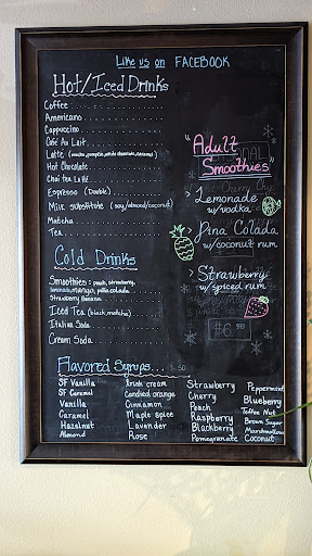 Cozy coffee shop with indoor/ outdoor seating. Wide variety of hot/ cold drinks and some food.