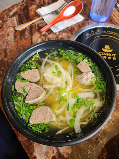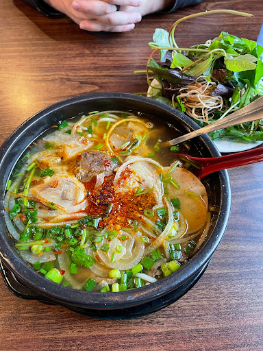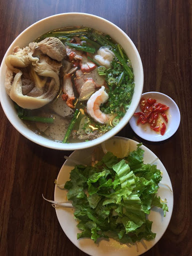 Delicious seafood pho. I added beef tendon which I have never had before and it was delicious! Not tge best Ive ever had but very good and grwat service.