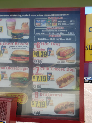 "Rip Off.. I payed over 8 dollar for a small dinky johnsonville brat and large fries and drink, definitely not satisfied with the value! I also asked for light ice on the drink and so they decide to fill the whole cup. This isnt my only bad experience with short stop, but it will be my last. They dont offer anything more special than regular fast food, in fact you will get better value and quality at any other mainstream fast food joint. The only way they get away with this is the good location, I recommend people pass for something better for the money!