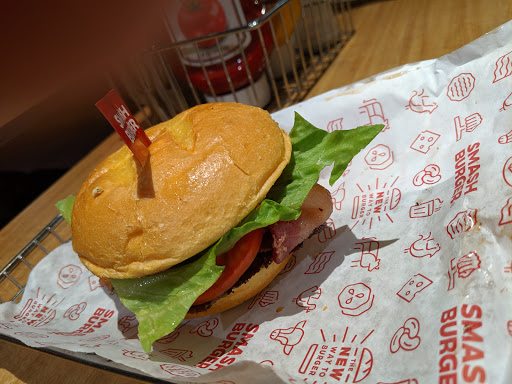 First time at Smashburger. Not a good experience at all. I asked if the fries were real fresh cut fries like Five Guys. I was told that they were and I got frozen fries. My wife asked if she could get a lettuce wrap and she was told yes. Her order came out with a piece of lettuce, tomato, avocado and the meat patty spread out on a plate. The order was put in as no bun. Who trained this staff?? When we asked for clarification on what went wrong with the order, an unknowledgeable village idiot type simply said "I dont know, sorry bout that." and wandered off. Really!!!!