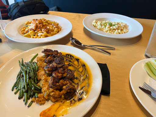 We came here to try some Nawlins food, but we were not impressed with the southern fare. Weve lived in the south and learned how to make jambalaya and gumbo. Maybe they toned down the flavors for those living away from the south...not sure. Here was what was in the buffet line: salad greens, great tray of fruit, delicious plate of smoked salmon with the bagels, cream cheese, and capers, shrimp etouffee, chicken and sausage gumbo, sausage jambalaya, green chili, roasted potatoes, french toast and bananas, scalloped potatoes, bacon, sausage, ham, scrambled eggs, prime rib and turkey carving station, omelet-made-to-order, various pastries. There were other things, but not memorable. Their shrimp had a great spice on the shells, and the lox was great. We were really hoping to be impressed with the Orleans fare, but it wasnt spicy at all. Now, the green chili had a great spice, but thats not Orleans fare. The gumbo didnt have the famous crab meat or file that we learned to put in the dish, and the jambalaya wasnt spicy at all. Id maybe come back for the shrimp and lox, but that doesnt make this buffet line special. Its hard to find a good gumbo these days....