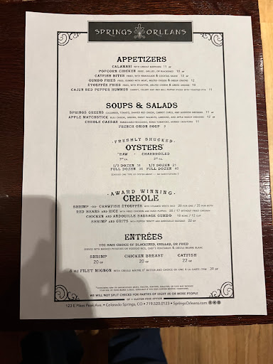 My bf is a HUGE Saints fan, and we love New Orleans. On Sunday (as a surprise for him), we left one bar to go to Springs Orleans to watch the Saints game. As soon as we walk in, we head to the bar to watch football. My bf says to the bartender "Hey what TV has the Saints game" or "Can you change one of these TVs to the Saints game" anyway the bartenders response was "Are you sure the Saints game is on now?" I was DEVASTATED by his question. 1) Its Sunday during football season 2) The COWBOYS game was on - every TV 3) Youre SPRINGS ORLEANS. Why dont you know when the New Orleans, Saints are playing?! We have had dinner here before and the service is HORRIBLE, but we always said we would go back to support this business - it made him feel closer to New Orleans. We will *no* longer support this business. WHO DAT!! ....not Springs Orleans