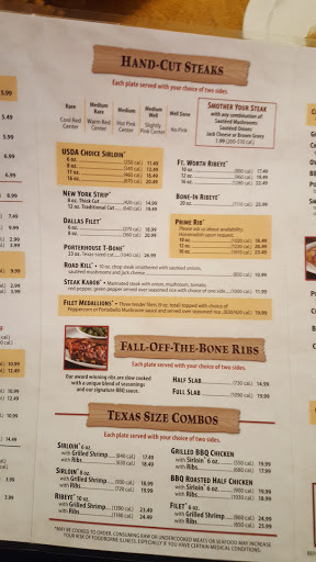 Food is generally good. I typically order my steaks medium-well and 3 times in a row they came out bloody and rare. The music is too loud. Sometimes I want to enjoy dinner with my family, but we all have to yell to be able to hear each other. And the line dancing is annoying, and usually signals an increase in music volume along with clapping. Servers are nice and prompt.