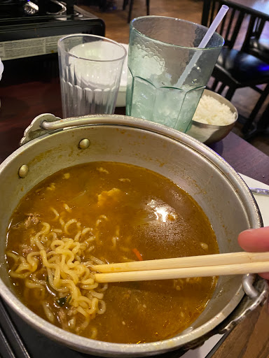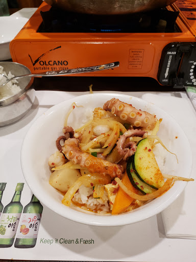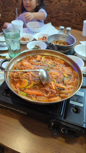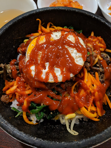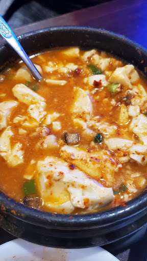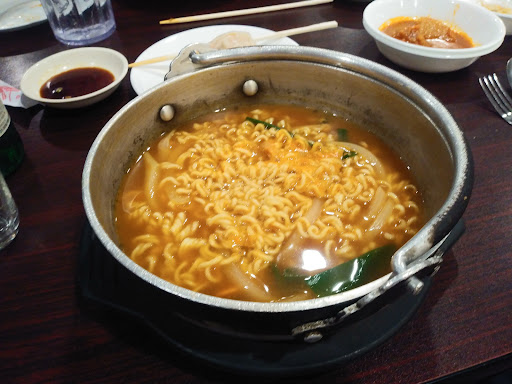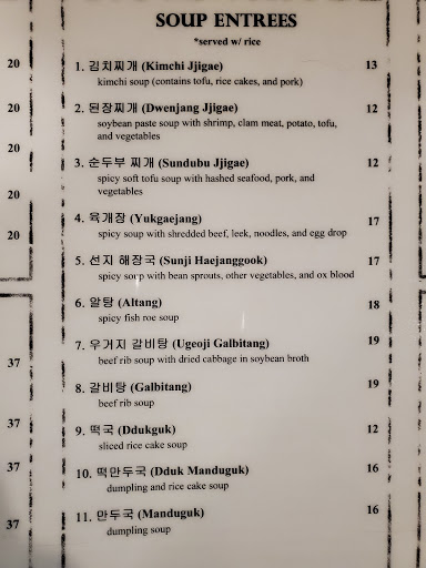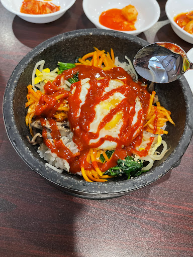 The food was overall pretty good, but has literally the most ridiculously bad service I have ever experienced at a restaurant ever. Ordered the kimchijigae and teokboki. The teokboki tasted terrible - super watery, not sweet at all, not even a little spicy, and for some reason they but a crapton of sesame oil in it (???). I asked if we could take back the teokboki and just order another kimchijigae for my wife instead - she says yes we just have to pay the difference because it costs more. Then the bill comes and the waitress puts both the kimchijigaues AND teokboki on the bill, despite ALREADY AGREEING beforehand we would be paying the difference. And she WOULDNT TAKE IT OFF, despite not only taking the dish away from us but already agreeing to make us just pay for 2 kimchijigaes. The waitress literally has no shame. Food was really good despite the teokboki, but wont ever come back due to the ridiculously bad service. What a piss poor excuse for a waitress.