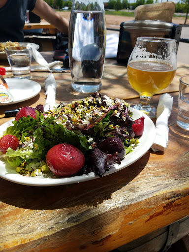 I am picky. I also rate on value. So cost per quality and quantity is important. Therefor I have to mark this place down slightly because they are a tad expensive. Also if you proclaim yourself as being a certain thing, you better live up to it - Slow food, etc. being prime - and it could use more artisinal ingredients on the menu. This place has a great atmosphere, if a very odd location. Its proximity to several large IT and other High Tech firms is advantageous, as is its nearness to a friends abode. I love the beer selection - very unique! Love the food selection as well - nice assortment. Now for the critique: First: The beers are nearly impossible to understand - that is they have names, but exactly what they are is not apparent. There is a large board with their names written in chalk - mixed in with guest beers. I am a brewer - and beer snob and had a very hard time with it. My friend is local and had a hard time understanding it. Then the servers seemed totally indifferent to the beer - no recommends, no explanations, nothing. It was like pulling teeth, and then they were condescending. I remarked on a beer being poured that had a beautiful red hue, and said it seems popular. I asked what it was. The answer was they are all different, there are many beers that have that color.... Well, I know that! Tell me what beers you have that are that color (Trinity especially). My answer was completely uninformative and not helpful for me making my next beer selection. These two problems are serious for a business - you need to inform. So the signage needs much improvement, and the servers need to keep up that informative attitude. It is especially important to a place like this where the beer is not your standard brewpub fare and has a more Belgian and French handcrafted aspect. You need to be tour guides. Now be aware and dont overdo that either. Lastlly almost all the farmhouse beers were out - save one, which one it was was not explained - again the servers kept that secret! It was horrible. It was infected with a wild something that made it phenolic to the point of it being an example of that beer fault. Band aid flavor is not acceptable in beer. Now some Belgians and other loose or farmhouse styles can have some phenolic character - it should never be the main flavor. When this happens to me - its composted! And I have made lambics, Saisons, fermented completely with wild yeasts from apples, and other fruits, etc. I know from what I say. Dont serve these. Ive found they dont even do well when cooked. Compost! Oh, and the cheese plate. Loved it, but where are the local Colorado cheeses? Had Maytag blue, Dubliner, etc. You should focus on Colorado artisinals - of which there are many! Even Dubliner is dubious - not really an artisanal cheese. And what about Belgian and French farmhouse cheeses?