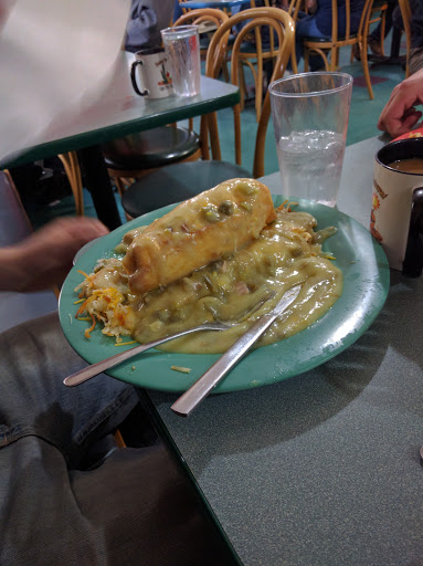 Ok, I cant help it--I love me a good greasy spoon restaurant. And a greasy spoon that serves Mexican breakfast and lunch? Im so there. Note: the hot green chili is HOT--made with habernero peppers. The red chili is also hot but its not so hot that you cant cool it off a touch with a nice side of sour cream. My husband likes the mild green chili. :)