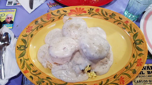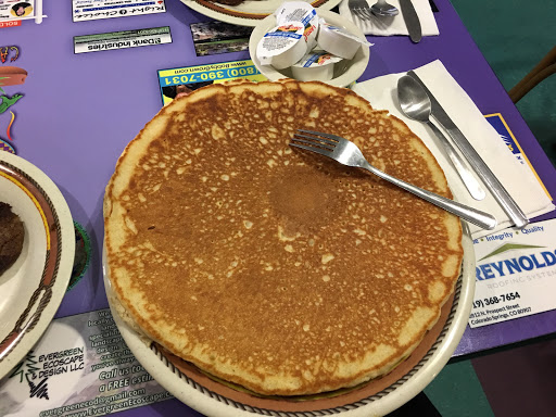 Their idea of huevos rancheros is wayyyy off the mark. The red chili was good but the rest was a nightmare. More of a flat burrito stuffed full of chorizo with some low quality cheese. Kids loved the chicken strips though. So I gave 3 stars.
