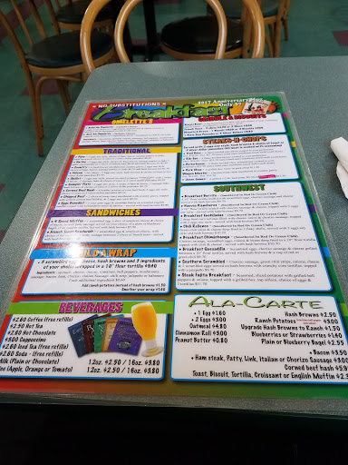 Walk my dog past here and it is often busy, so decided to give it a try. I had the southern scramble which was very tasty. My girlfriend had the Monte Cristo which was also delicious. The service was very good and the facility is very clean. Food was moderately expensive with menu items from $9 - $12.