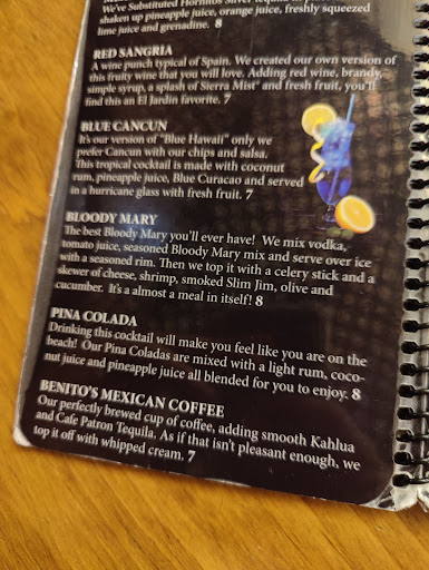 The place is in little Mexico, which makes me feel at home (West Coast). My favorite kind of Mexican food is where all the ingredients are plopped on a plate and you can barely tell the difference between a burrito and a taco. You know that youre getting a meal here. Great place to take a gal out on a date if you want to know how her bowels operate later in the night. 5 stars El Jardin!