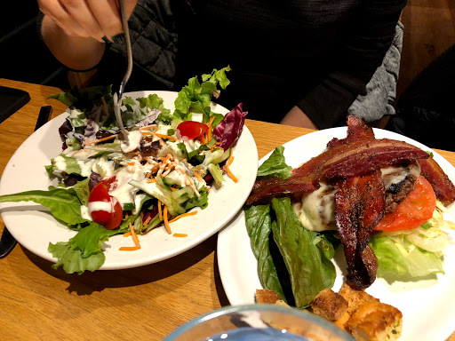 We went to this restaurant for lunch with three adults and two kids. Neither of the kids were happy with their orders. They got the burger and the fish & chips. I traded my order of nachos for the burger and thought it was fine. I did however add the guacamole and hot peppers from the Nachos so it may not be the best representative of what my little experienced. The fish was over done and fried to the point of being dry and the breading on the verge of burnt. Both of the adults were happy with their orders another burger and their French dip. I was able to finish off my pulled pork nachos and the pork was cooked well and the nachos held up well under the toppings. The star of the meal was the deep fried brownie sundae. There was a wide selection of beers that we all found a favourite despite wildly different tastes. Our waiter was great and did his best to make up the kids disappointment.