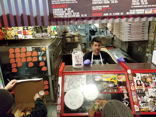 What are you cry babies talking about? This place gives you pizza by the slice at 2.50 plus .50 cent for each topping. Place is amazing! I love it. Great place for after bar/club/tavern scene as well. Owners a straight shooter giving you hot, fresh pizza at a profit margin thats unbeatable in Cap Hill. Dont like it, theres a Dominos a couple blocks down. Food is great and cheap! A Cap Hill original. Half the negative reviews are most likely just a bunch of uptight tourists wanting 1st class service with their 2.50 cent slice of pizza. Who the fuc% pays for 2.50 a slice of pizza with a credit card? Bring cash! Its a mom and pop place just trying to make a dollar out of 15 cents. The "self-absorbed" need to stick to Dominos.