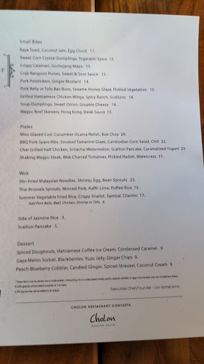 Braved the Arctic temperatures to enjoy dinner here with a couple friends visiting from Las Vegas. ChoLon is best known for their French onion soup dumplings, which are legitimately, delicious, but that is truly just the start of the delectable options available. Before even getting to the food, the waiter impressed me by asking if anyone had dietary restrictions and, when I confirmed I was gluten sensitive, did a quick run through of the full menu advising which dishes were friendly and which to avoid. (PSA, I am gluten sensitive, but have tested negative for Celiac disease. Gluten causes me pain but luckily, does not damage my body). Okay, now towards the food. ChoLon employs one of my favorite dining methods, which is sharing dishes family style. I love the opportunity to both sample multiple different flavors and to compare impressions with fellow diners. On this evening, we started with the soup dumplings (sadly, not gluten-free), wagyu beef skewers, and the pork belly buns. The pork belly was delectable, even without the buns (conveniently, served separately). The soup dumplings were mind-blowing, as always (and likely worth the inevitable and unfortunate consequences later). Rich broth explodes in your mouth as you bite in, surprisingly close to searing, and melty Gruyere is the finishing touch, with a rather nice dumpling to hold it all together. I was mildly disappointed by the beef skewers, mostly because I expect a lot when you throw around the word "wagyu" and because everything else was so stand out. The lobster crepe was everything you could dream. Fresh, fun mix of Asian and french influence, with the tangible enjoyment of creating your own lettuce wrapped delight. The lamb chops were PERFECTLY cooked and perfectly paired with the caramelized yogurt accompaniment, though I could have done without the underwhelming red curry gratin. I was excited about the Stir-fried Malaysian noodle dish from the "From the Wok" section (rice noodles!), but though it was good, it was slightly too spicy to enjoy all the layers of flavors. Do yourself a favor, and order the Dancing Scallops and the Brussel sprouts. Absolutely, the standouts of the night. Im not generally a fan of the miniature cabbage cousin, but damn if those werent the most delicious Brussels sprouts I have ever had the pleasure to enjoy. The texture was not unpleasantly squishy, nor fried to a crisp, and the ground pork and kefir lime leant a unfamiliar flavor to the dish. The Dancing Scallops literally dance, an experience that must be seen to be believed. The scallops themselves were incredibly fresh, beautifully seared, and incredibly succulent. Paired with a Japanese pancake and salsa verde, these babies will dance across your tongue and leave a lasting impression. Overall, the meal was a delight, the service on point, and well worth the journey through the cold weather.
