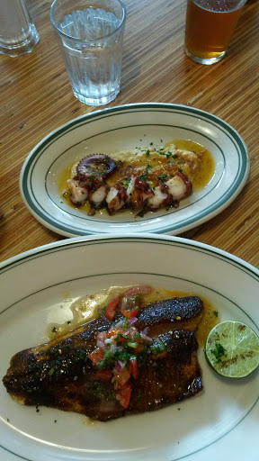 As a pescatarian from LA driving thru the neighnorhood, I was hoping for adequate and was surprised by the delicious offerings! The trout with mole sauce special caught my attention. My husband and I started with a Ceasar salad that was very tasty with chunks of anchovies and fresh paramasean. We split the trout special and grilled octopus on hummus. The octopus was perfectly cooked, meaty not rubbery, yum! The trout was so delicious, we decided to put them to the real test and ordered a crab cake. At first we were disappointed not to see chunks of crab, but to our surprise, is was indeed chock full of crab and very tasty, with a crispy exterior. Not the best crab cake Ive ever had, but they passed the crab cake test. I look forward to our next drive thru the neighborhood. I hope its soon!